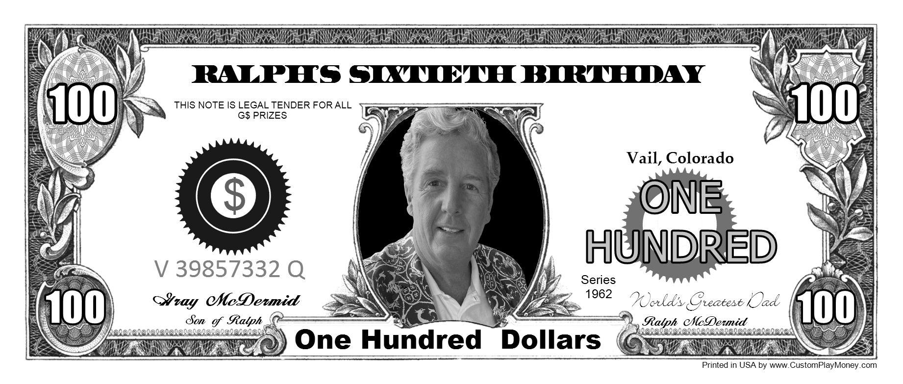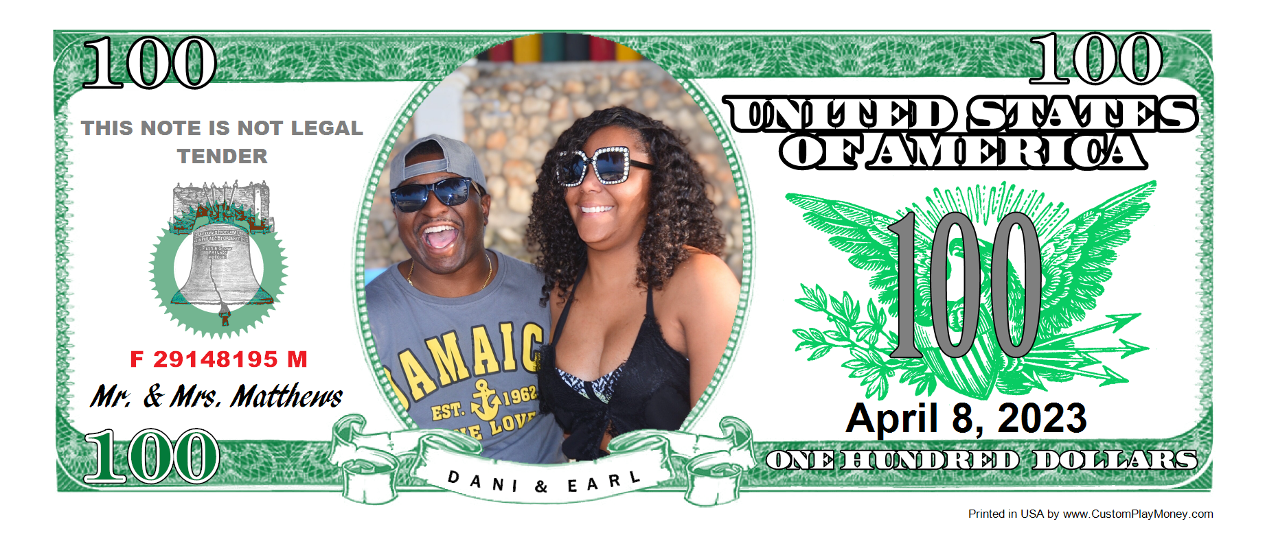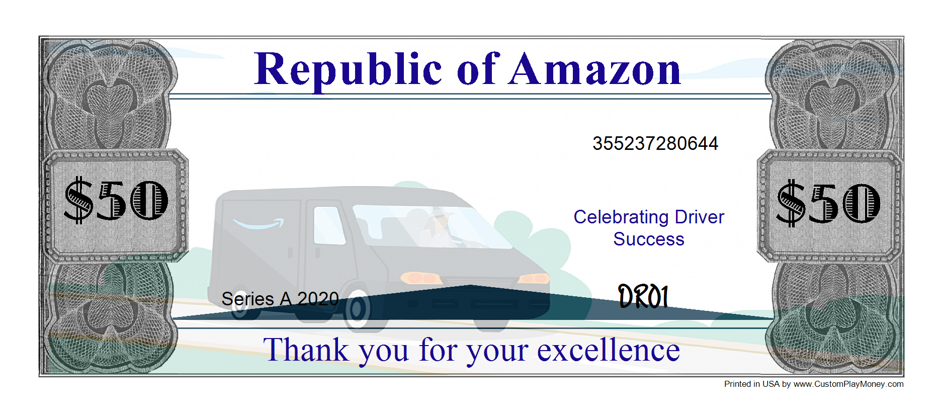CustomPlayMoney.com will print and slice your order, and ship via USPS First Class, Priority or Express. One Day turn around on most orders.