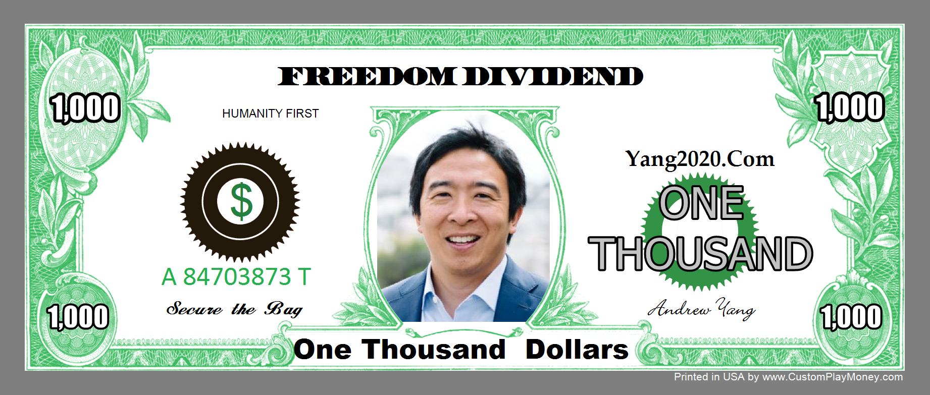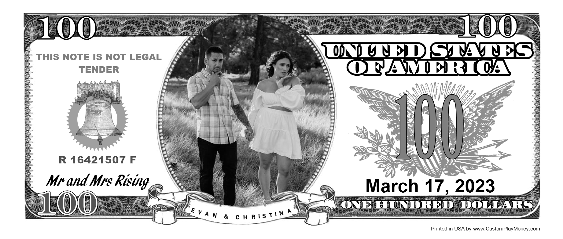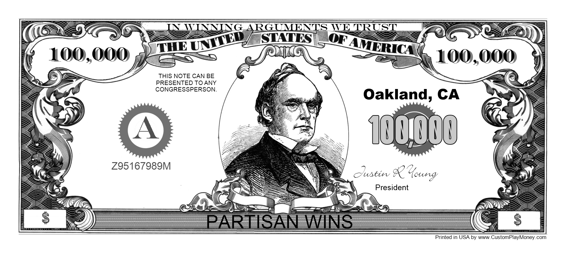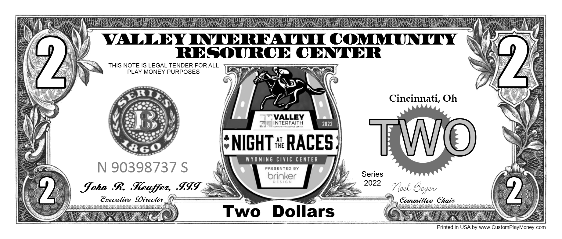CustomPlayMoney.com will print and slice your order, and ship via USPS First Class, Priority or Express. One Day turn around on most orders.