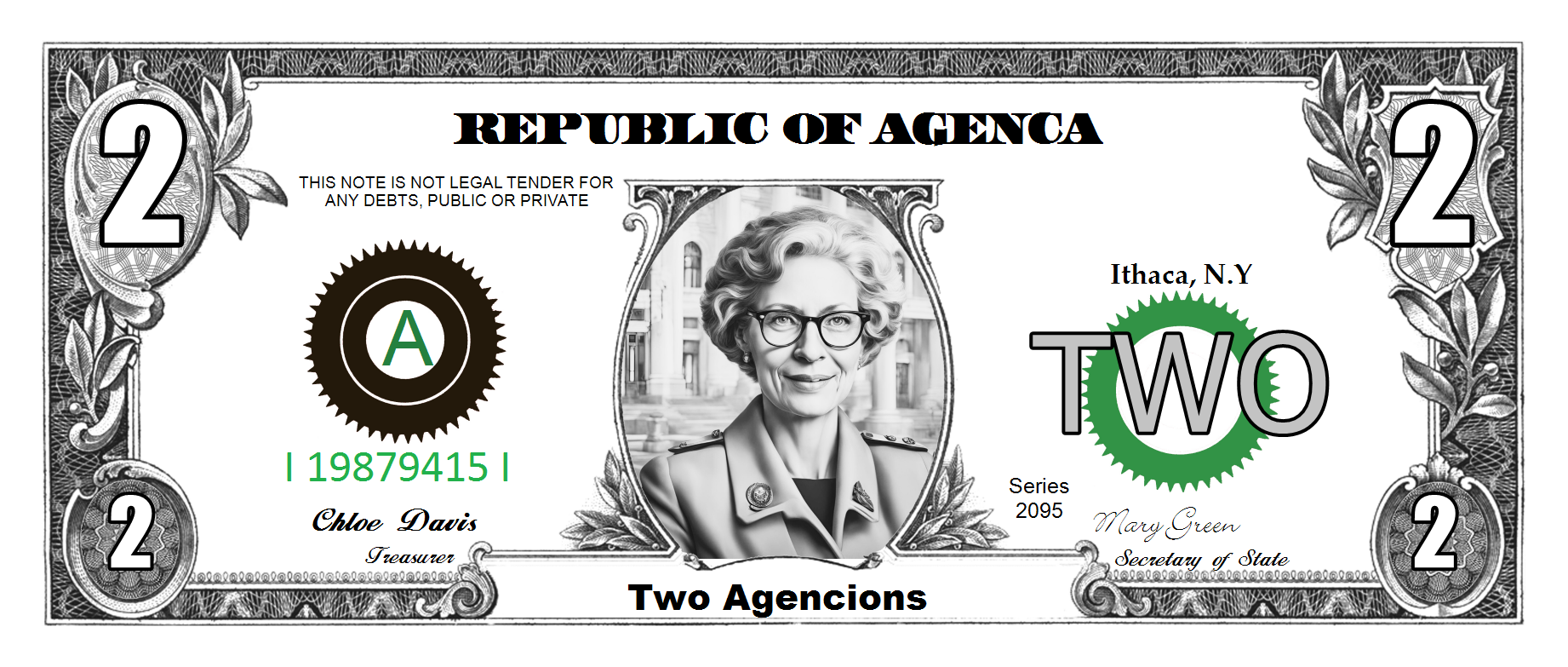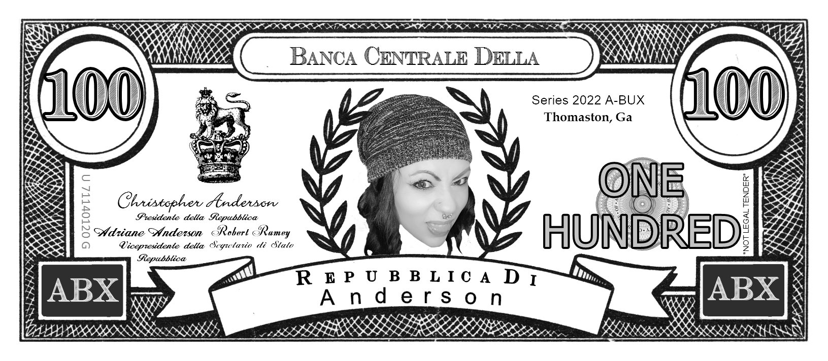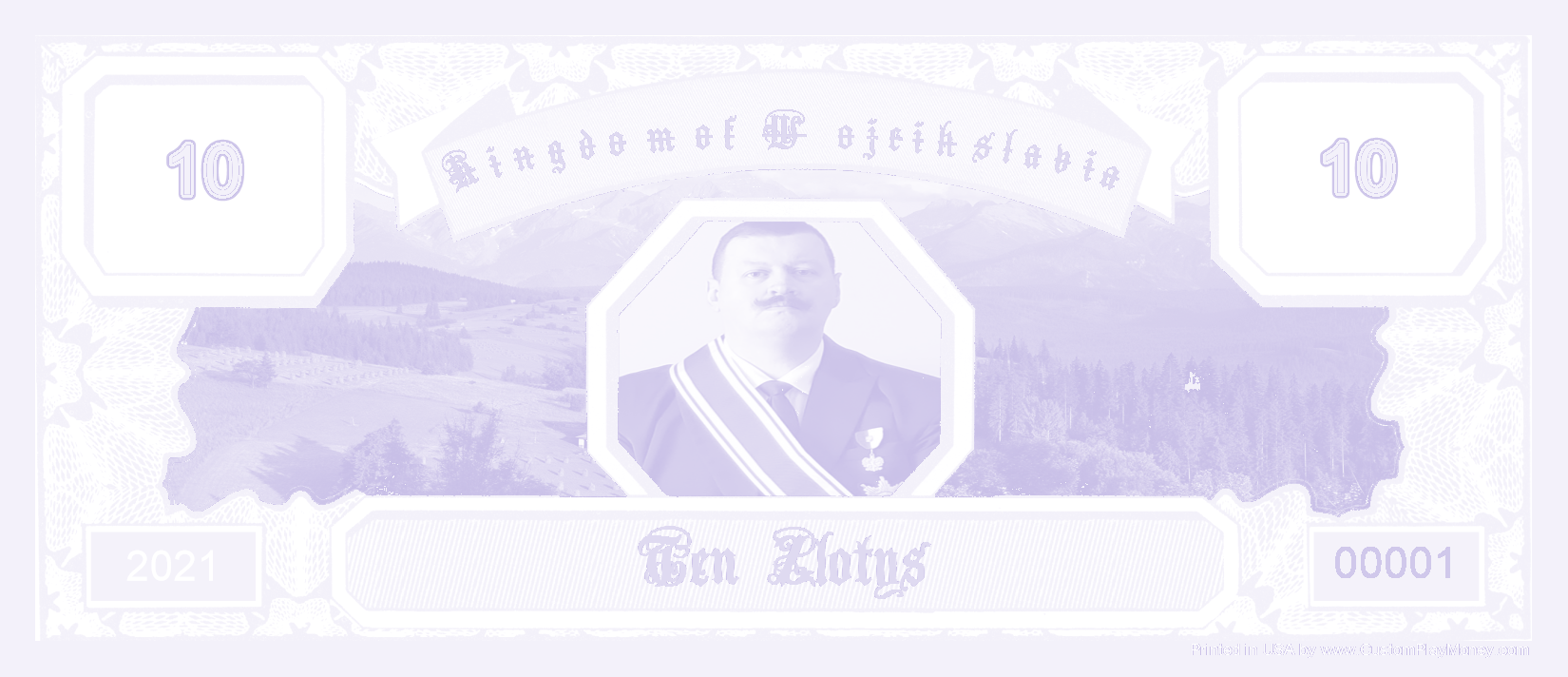 We support any world wide currency (or make your own up) for your play money items. Assigning the currency helps when placing denomination components on your item. When rendering the denomination amounts spelled out ... "One Hundred" for example, the proper denomination spelling will be automatically added to produce "One Hundred Dollars".